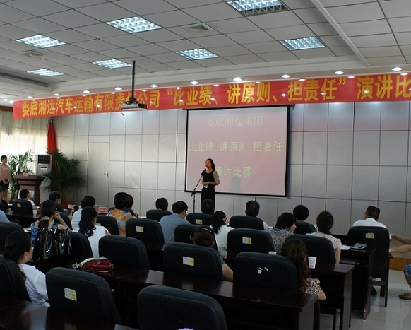 在比賽中,參賽選手緊緊圍繞公司成立五年多來的發(fā)展歷程和重大成就,結合本職工作,贊美身邊的先進典型和感人事跡,頌揚了婁運人“比業(yè)績、講原則、擔責任”的工作作風,暢談在工作中如何愛崗敬業(yè)、勇擔責任,爭創(chuàng)佳績。富有感染力和說服力的演講,充分展示了婁底湘運人積極向上、奮勇爭先、無私奉獻的良好精神風貌,贏得了現場觀眾的共鳴和熱烈掌聲。