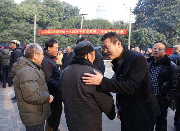 公司董事長(zhǎng)兼總經(jīng)理彭瑞華與老同志親切交談