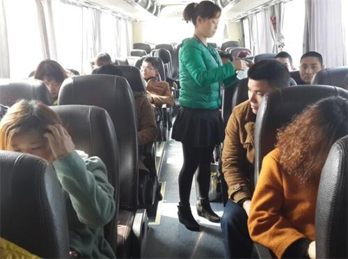 冷水江汽車站服務(wù)班員工上車檢票并檢查旅客安全帶佩戴情況