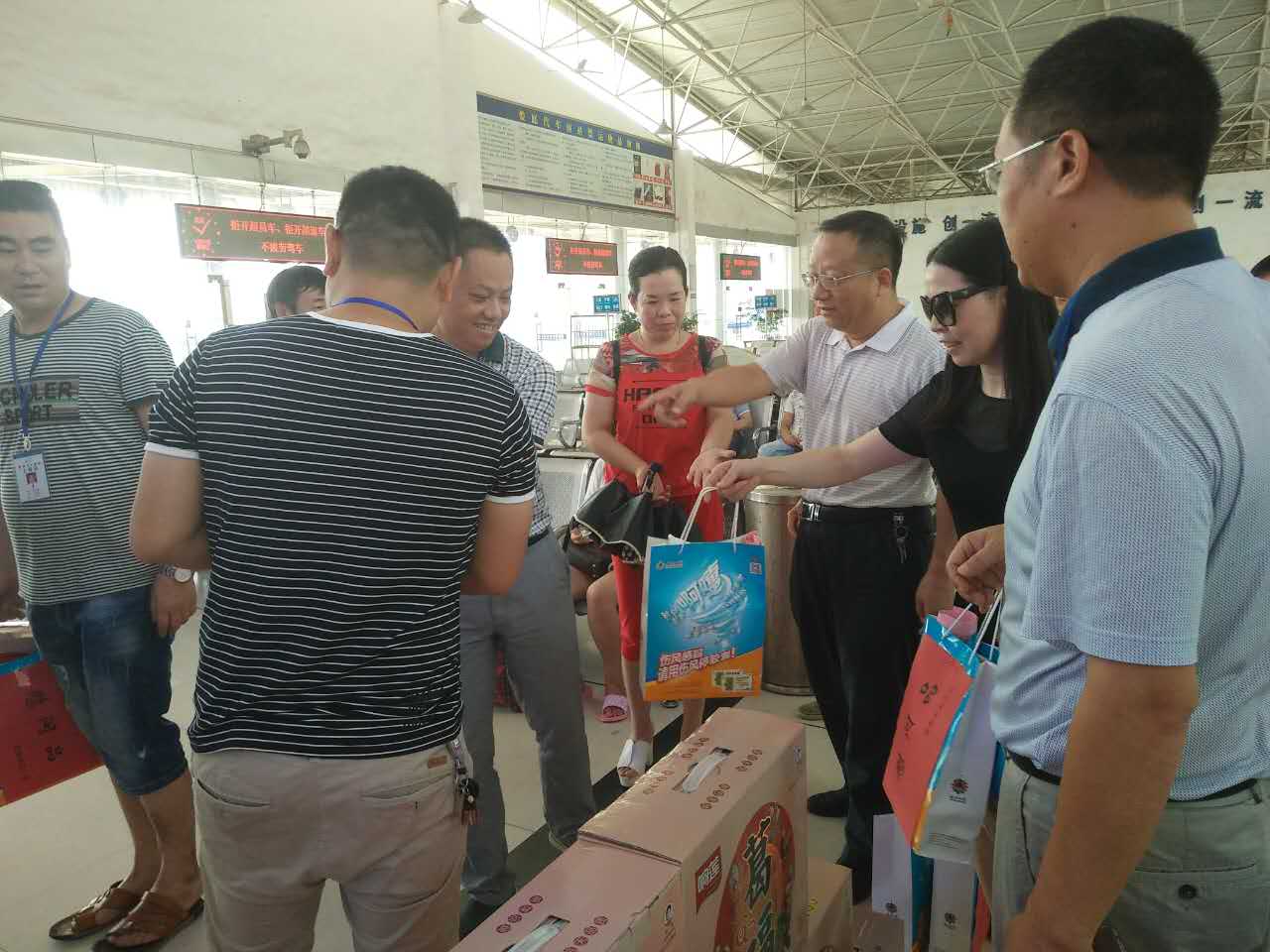 今天上午市總工會黨組成員、副主席曾小尚一行來到婁底汽車南站看望慰問堅(jiān)守崗位的一線員工,為他們送上防暑降溫品以及高溫作業(yè)宣傳資料,并向他們致以親切慰問。公司董事兼副總經(jīng)理、工會主席謝克明陪同慰問。