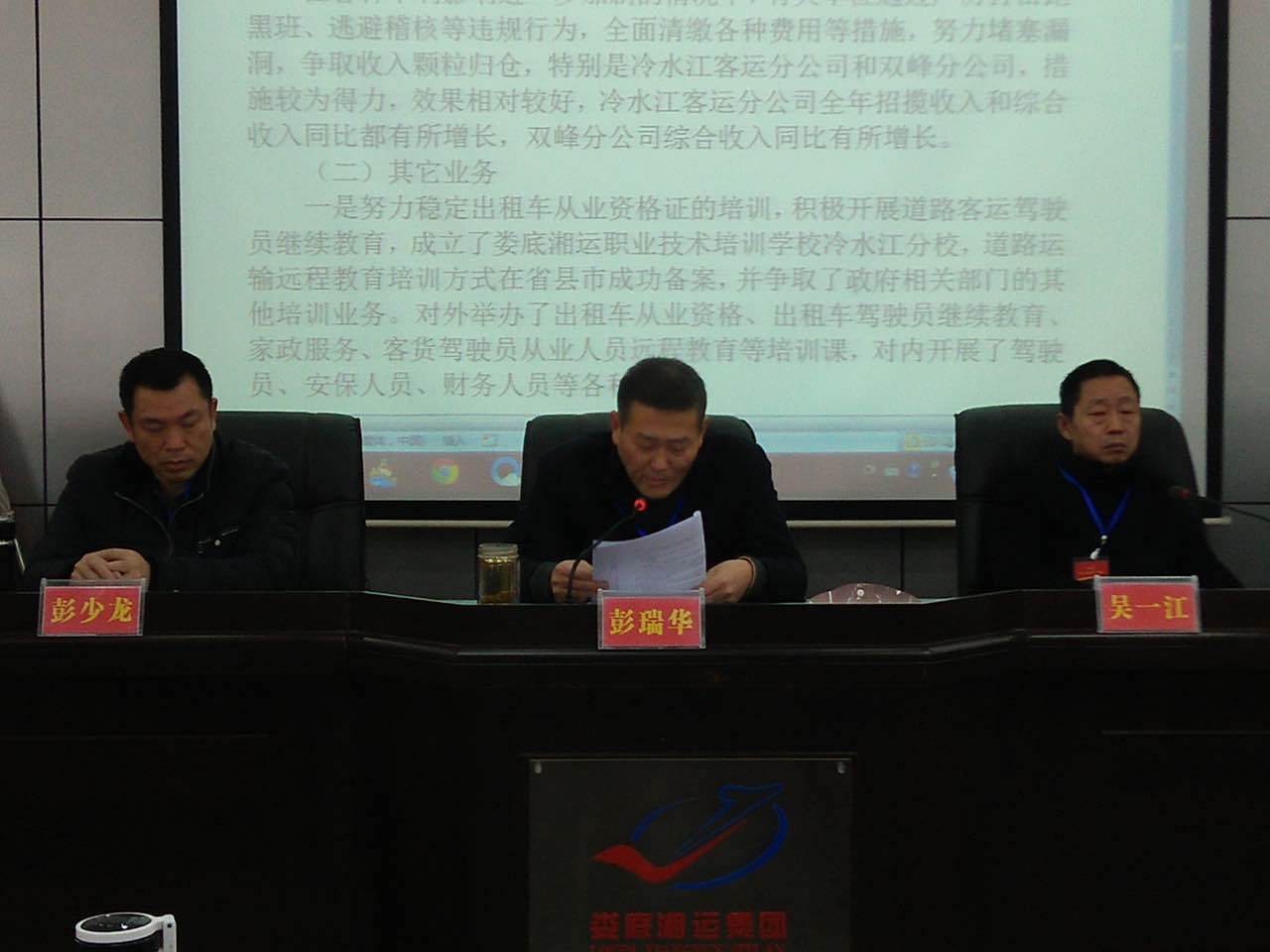 公司董事長兼總經(jīng)理彭瑞華在大會(huì)作《公司2017年工作報(bào)告》,他總結(jié)回顧了2016年主要工作完成情況,對(duì)2017年工作提出了新思路和新規(guī)劃。2016年面對(duì)日益惡化的外部環(huán)境和前所未有的壓力,全司上下團(tuán)結(jié)一心,沉著應(yīng)對(duì),在危機(jī)中抓機(jī)遇、在困難中謀發(fā)展,通過夯實(shí)安全管理,開拓生產(chǎn)經(jīng)營,主副業(yè)并舉提效,保持了企業(yè)的健康穩(wěn)定發(fā)展。2017年公司將全面深化企業(yè)內(nèi)部改革,進(jìn)一步加強(qiáng)企業(yè)安全生產(chǎn)管理,采取有效措施遏制班線客運(yùn)份額和收入再減少趨勢(shì),鞏固和發(fā)展現(xiàn)有門面場(chǎng)地租賃、城市客運(yùn)、職業(yè)培訓(xùn)、油料供應(yīng)和汽車維修等業(yè)務(wù),做大做強(qiáng)旅游客運(yùn)業(yè)務(wù),下力氣發(fā)展城鄉(xiāng)公交和城際公交業(yè)務(wù),努力尋找能帶動(dòng)公司轉(zhuǎn)型升級(jí)的有前景的項(xiàng)目,攻堅(jiān)克難,內(nèi)嚴(yán)管理外爭(zhēng)市場(chǎng),主動(dòng)適應(yīng)新常態(tài),使企業(yè)在改革中穩(wěn)步健康發(fā)展。