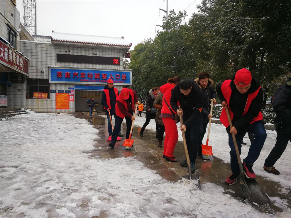 早上八點(diǎn)半,在車站生產(chǎn)副經(jīng)理付育平帶領(lǐng)下,辦公室、調(diào)度、稽查大隊、營收監(jiān)控隊、服務(wù)班、安保等部門近20多名志愿者拿著鏟子、鐵鍬和竹掃把等工具,對車站旅客入口處通道、車輛進(jìn)站通道、車站站坪、短途通道、車輛出站通道等地的堅冰進(jìn)行鏟除,寒風(fēng)凜冽,積雪厚重,冰塊堅硬,但我們的雷鋒志愿者們熱情高漲,大家發(fā)揚(yáng)不怕若不怕累的精神,齊心協(xié)力,分工合作,揮鍬掄鎬,鉚足了勁,發(fā)起了挑戰(zhàn)嚴(yán)冰暴雪的攻堅戰(zhàn),在車站奏響了美妙的樂意,汗水濕透了背脊,手掌磨起了血泡,冰雪打濕了鞋襪,大家全然不顧,只看見一頂頂小紅帽在雪地上不停的運(yùn)轉(zhuǎn),很多駕駛員和班線承包人紛紛加入鏟雪隊伍,婁星微馬隊的20多名隊員們在他們隊長的帶領(lǐng)下也來到車站幫著一起鏟雪除冰,他們橙色的微馬隊服也是一道道靚麗的風(fēng)景線。大家都有一個共同的名字——學(xué)雷鋒志愿者!他們的一言一行彰顯真情,贏得了過路市民的連聲稱贊!