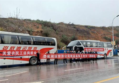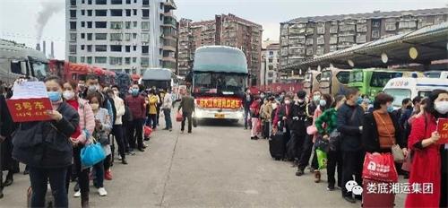 為貫徹落實中央和省、市關于疫情防控和全力做好農民工返崗運輸服務保障的決策部署,針對農民工返崗生產企業(yè)復工緊迫的情況,在市委市政府、行業(yè)主管部門的大力支持以及各縣市人民政府和交通、人社等部門的精心組織下,我市啟動“點對點,一站式”客運包車,助力農民工安全有序返崗。作為承擔各縣市農民工返崗復工包車運輸任務的主力軍——婁底湘運集團,從2月18日開始,我司各客運單位已調度70臺次定制包車,分20批安全運送1662名婁底、新化、漣源、雙峰、冷江籍農民工前往長沙瀏陽、浙江義烏、福建、廣州、東莞、貴州、?诘鹊胤祶弿凸。