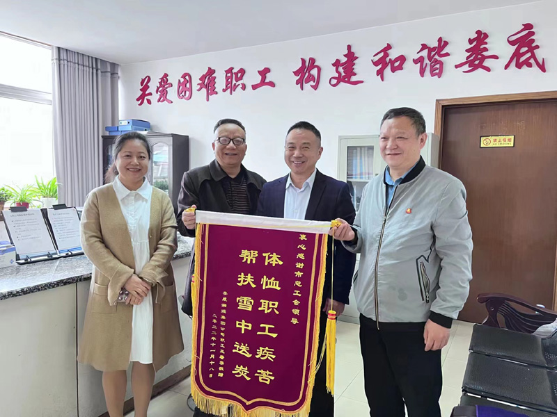 近日,受被幫扶困難職工代表王著容同志的委托,婁底湘運(yùn)集團(tuán)工會(huì)負(fù)責(zé)人專程來(lái)到婁底市總工會(huì),將承載著困難職工濃濃的感恩和敬意的一面錦旗和一封感謝信專程送到市總工會(huì)黨組成員鄧江華、市困難職工幫扶中心主任朱志瓊手中,紅彤彤的錦旗上“體恤職工疾苦、幫扶雪中送炭”幾個(gè)大字真誠(chéng)道出了困難職工對(duì)黨、對(duì)政府、對(duì)市總工會(huì)的感謝之情。